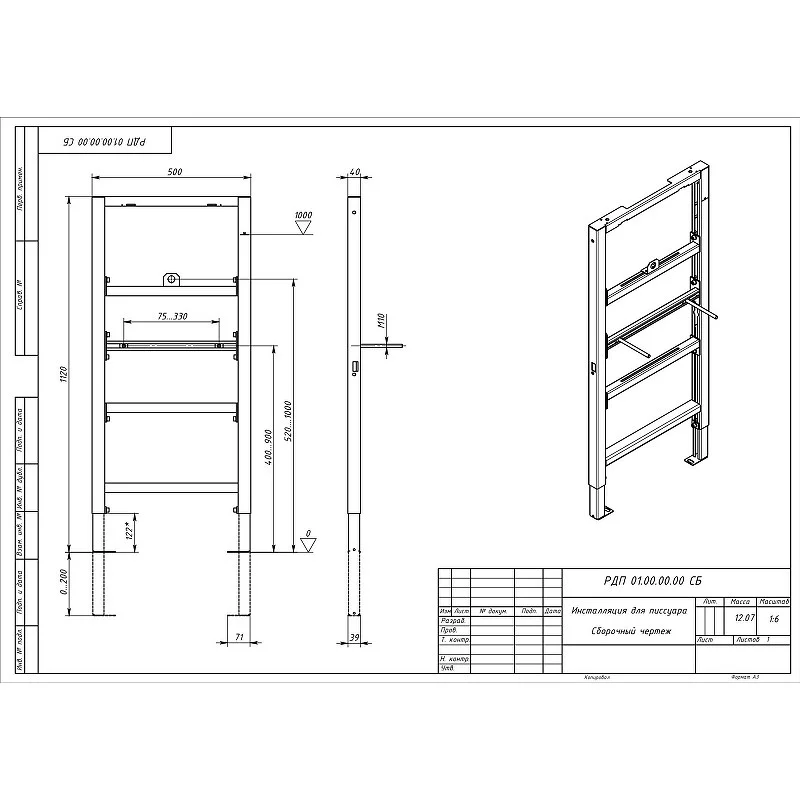 Инсталляция для писсуара Aquatek 1120x500x40 INSU-0000001