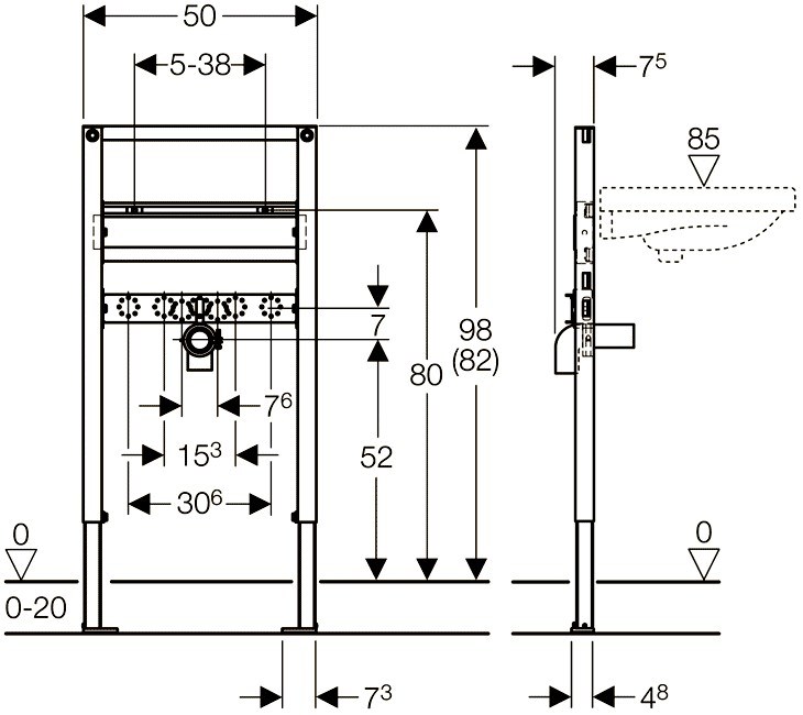 Размер: 98/82х50х8см. Geberit Duofix монтажный элемент для раковины, Н98/82