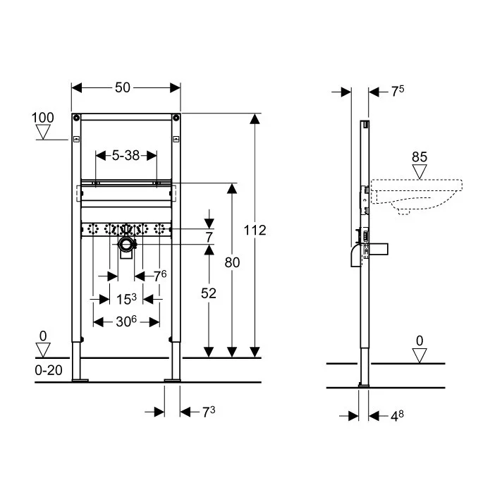 Размер: 112х50х8см. Geberit Duofix монтажный элемент для раковины, Н112