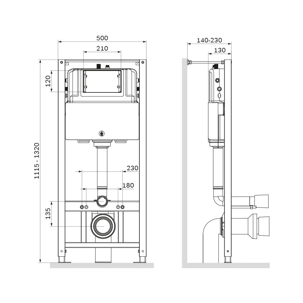 Максимально полная комплектация - все необходимые крепления патрубки звукоизолирующая прокладка в комплекте. Вертикальные ребра жесткости в конструкции рамы – дополнительная опора в месте давления керамики на стену. Благодаря им инсталляция более универсальная и подходит для унитазов любых размеров включая унитазы с небольшой контактной поверхностью. Нет необходимости докупать дополнительные аксессуары для монтажа таких унитазов.