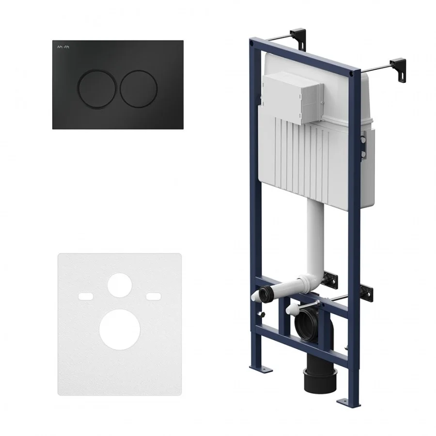 Максимально полная комплектация - все необходимые крепления патрубки звукоизолирующая прокладка в комплекте. Вертикальные ребра жесткости в конструкции рамы – дополнительная опора в месте давления керамики на стену. Экономия пространства благодаря узкому бачку – 120 мм глубиной. Заливной клапан с низким уровнем шума - Класс II согласно европейского стандарта EN 14124. В комплекте механическая двухрежимная клавиша из ABS пластика в цвете черный матовый. ""