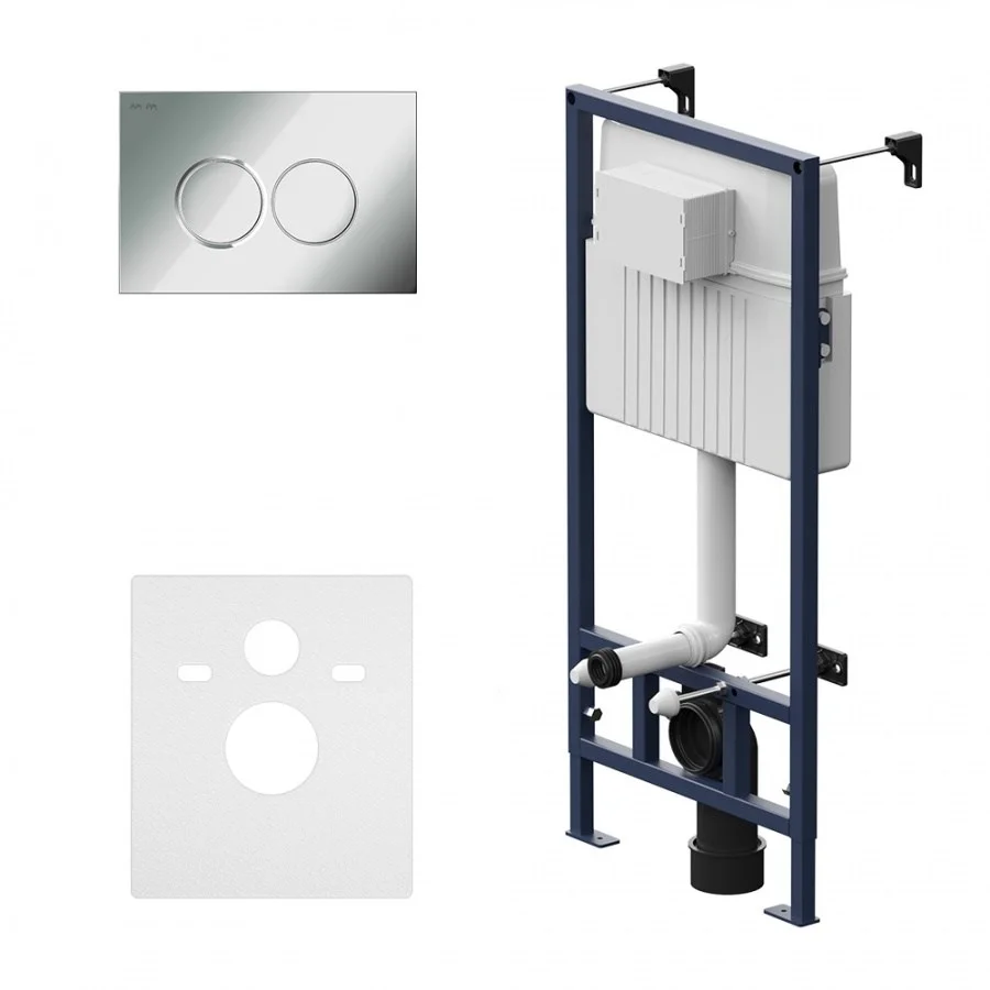 Максимально полная комплектация - все необходимые крепления патрубки звукоизолирующая прокладка в комплекте. Вертикальные ребра жесткости в конструкции рамы – дополнительная опора в месте давления керамики на стену. Экономия пространства благодаря узкому бачку – 120 мм глубиной. Заливной клапан с низким уровнем шума - Класс II согласно европейского стандарта EN 14124. В комплекте механическая двухрежимная клавиша из ABS пластика в цвете глянцевый хром. ""