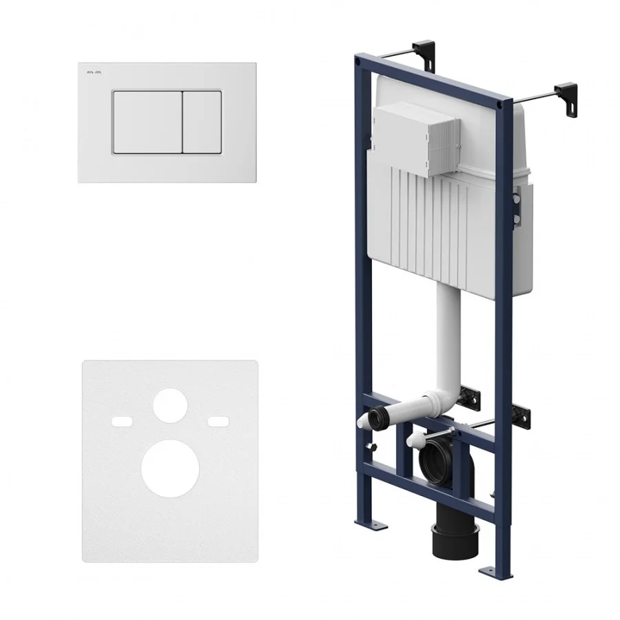 Максимально полная комплектация - все необходимые крепления патрубки звукоизолирующая прокладка в комплекте. Вертикальные ребра жесткости в конструкции рамы – дополнительная опора в месте давления керамики на стену. Экономия пространства благодаря узкому бачку – 120 мм глубиной. Заливной клапан с низким уровнем шума - Класс II согласно европейского стандарта EN 14124. В комплекте механическая двухрежимная клавиша из ABS пластика в цвете глянцевый белый. ""