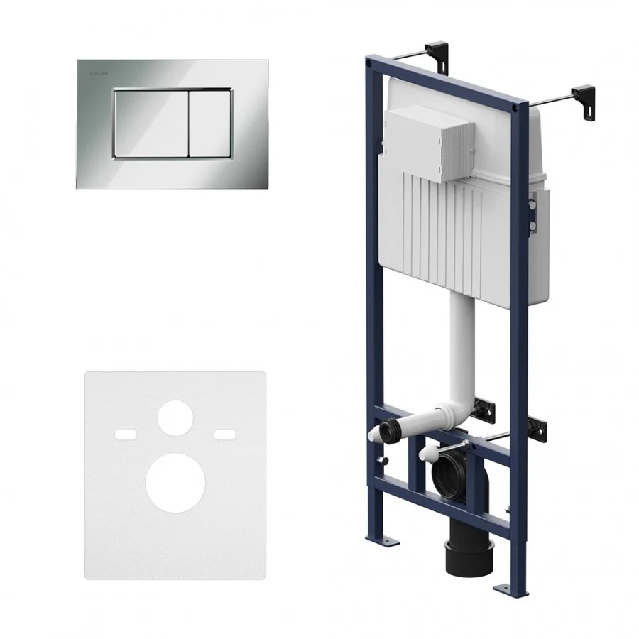 Максимально полная комплектация - все необходимые крепления патрубки звукоизолирующая прокладка в комплекте. Вертикальные ребра жесткости в конструкции рамы – дополнительная опора в месте давления керамики на стену. Экономия пространства благодаря узкому бачку – 120 мм глубиной. Заливной клапан с низким уровнем шума - Класс II согласно европейского стандарта EN 14124. В комплекте механическая двухрежимная клавиша из ABS пластика в цвете глянцевый хром. ""