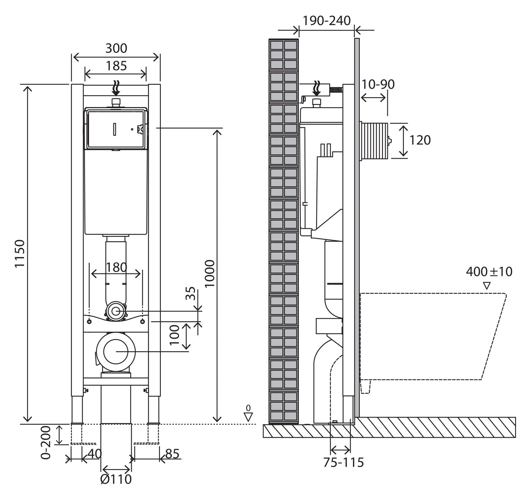Инсталляция для унитаза BelBagno 30 1150х300х187 мм BB003-30
