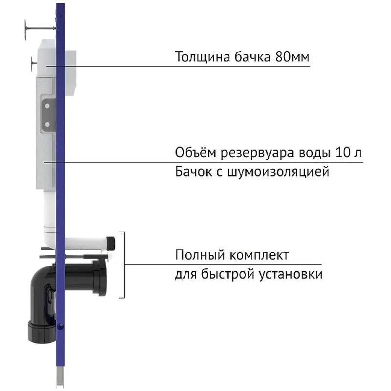 Толщина бачка 80 мм.