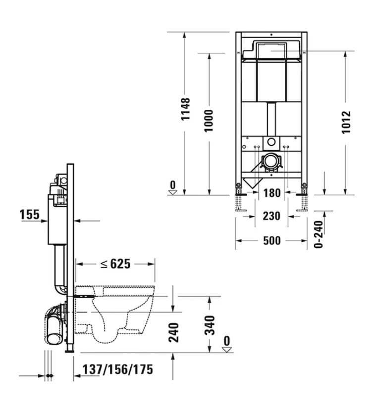 Инсталляция Duravit DuraSystem для унитаза ширина мм-500 высота мм-1148 тип смыва-двойной объем сливного бачка л-9 клавиша смыва-необходимо заказать с удалением запаха с помощью встроенной веерной вытяжки