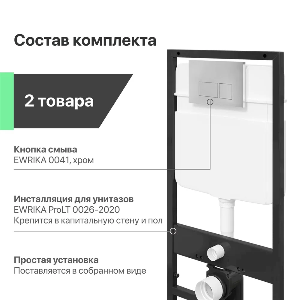 Инсталляция для унитаза EWRIKA ProLT 0026-2020 с кнопкой смыва 0041 хром 552375