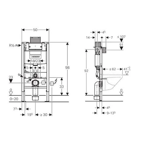 Инсталляция для унитаза Geberit Omega 111.030.00.1 H98 см, для клавиш Omega