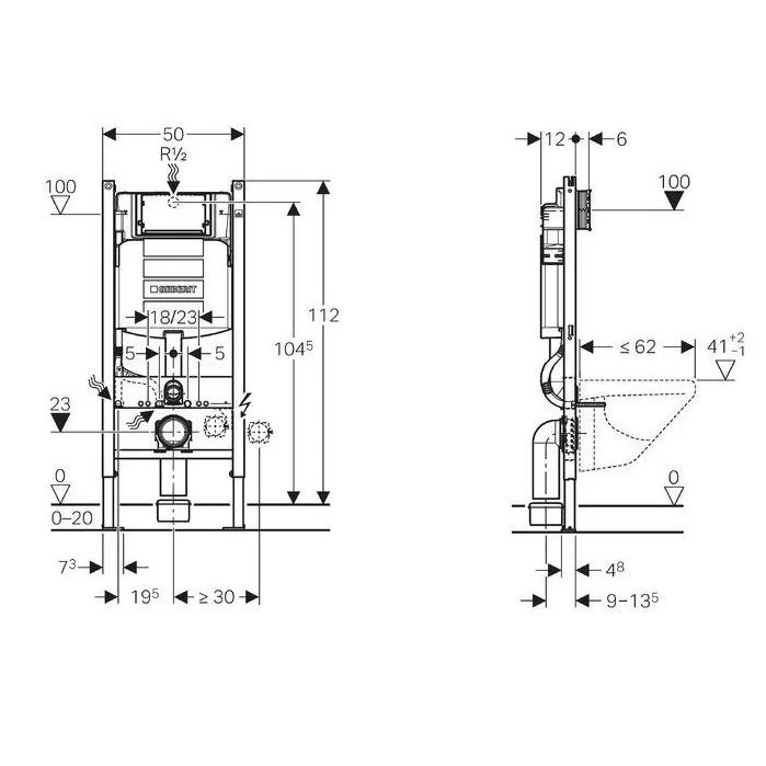 Geberit Plattenbau Sigma монтажный элемент для подвесного унитаза, H112, для клавиш линии Design (UP320).