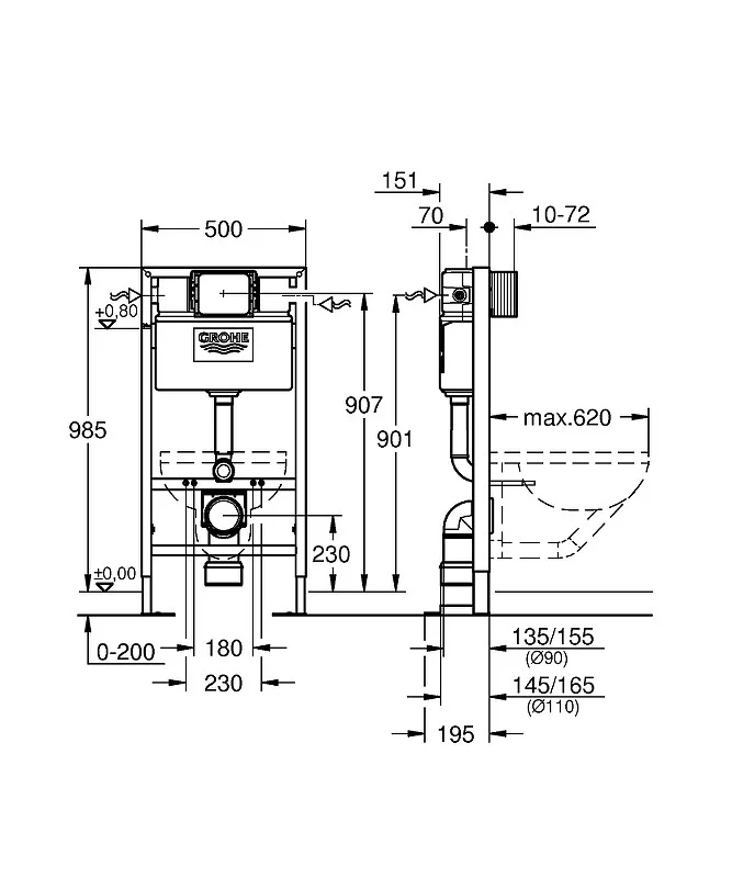 Инсталляция для подвесного унитаза Rapid SL 38586001 (38586) (высота 1м отдельностоящая)