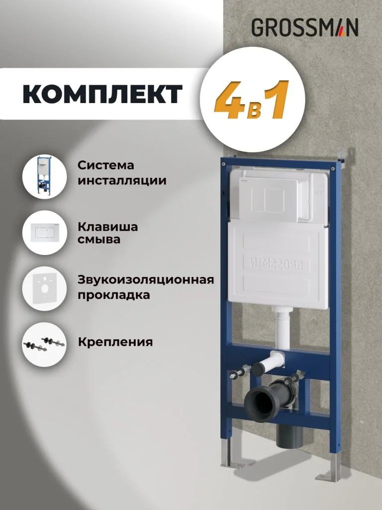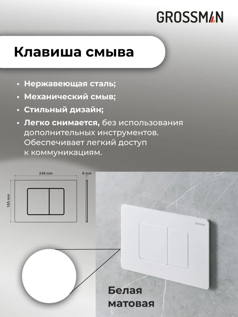 Инсталляция для унитаза GROSSMAN 900.K31.01.000 с клавишей смыва Classic 700.K31.04.01M.01M бел мат