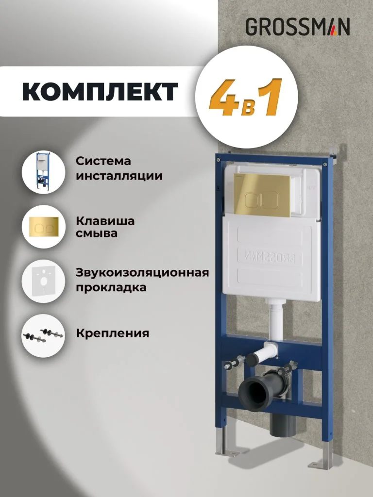 Инсталляция для унитаза GROSSMAN 900.K31.01.000 с клавишей смыва Cosmo 700.K31.02.300.300 золот гля