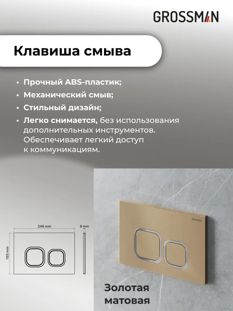 Инсталляция для унитаза GROSSMAN 900.K31.01.000 с клавишей смыва Cosmo 700.K31.02.310.310 золото матовое арт.97.02.310