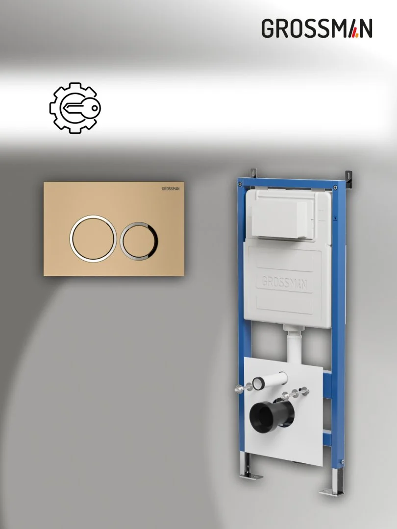 Инсталляция для унитаза GROSSMAN 900.K31.01.000 с клавишей смыва Galaxy 700.K31.01.310.310 золото матовое арт.97.01.310