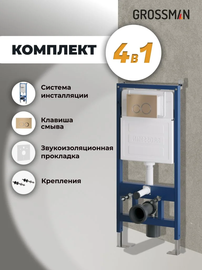 Инсталляция для унитаза GROSSMAN 900.K31.01.000 с клавишей смыва Galaxy 700.K31.01.310.310 зол мат