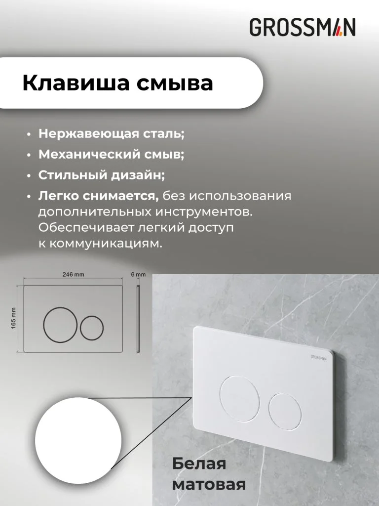 Инсталляция для унитаза GROSSMAN 900.K31.01.000 с клавишей смыва Style 700.K31.05.01M.01M бел матов