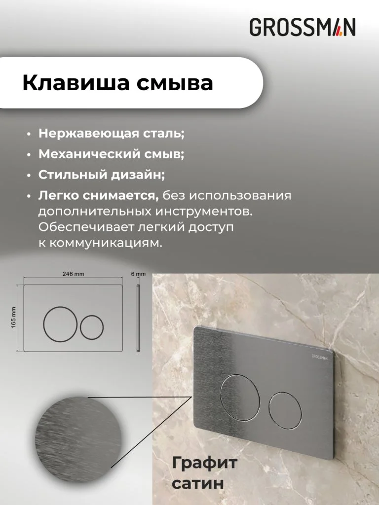 Инсталляция для унитаза GROSSMAN 900.K31.01.000 с клавишей смыва Style 700.K31.05.42M.42M графит са