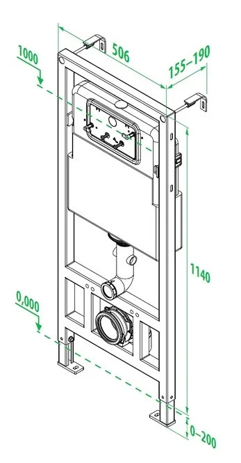 Инсталляция рамная для подвесного унитаза, 1180x506 мм, в комплекте: рамная конструкция со смывным бачком и элементами крепления к стене, насадки для подключения к канализационным трубам и подвесному унитазу, водосливная арматура, крепежные элементы. Упаковка: картонная коробка