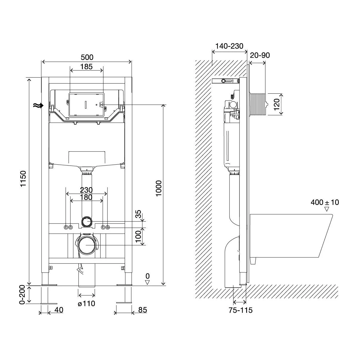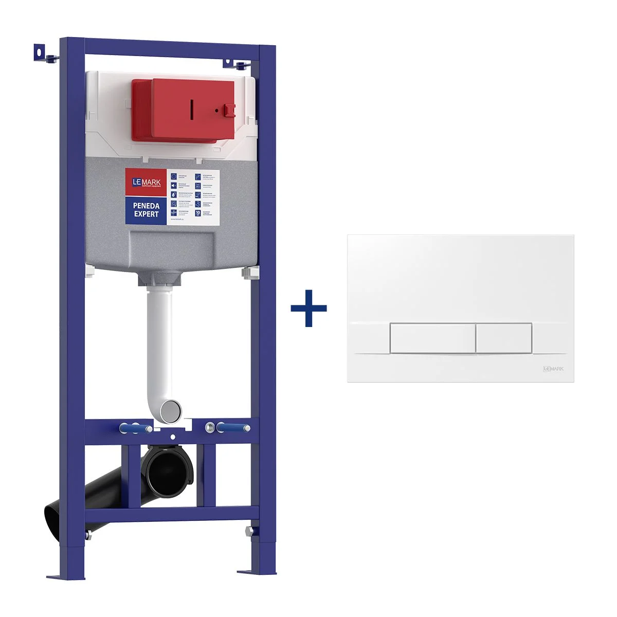 Система инсталляции на монтажной раме, Бачок скрытого монтажа с запорным вентилем, Кнопка смыва, Комплект креплений, патрубков для подключения к унитазу, шпильки, Фановый отвод для канализации, Инструкция, Клавиша смыва