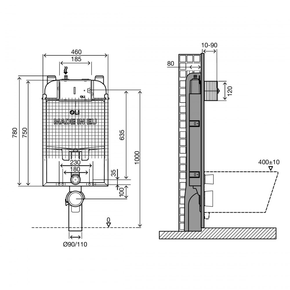 - Совместима со всеми видами подвесных унитазов