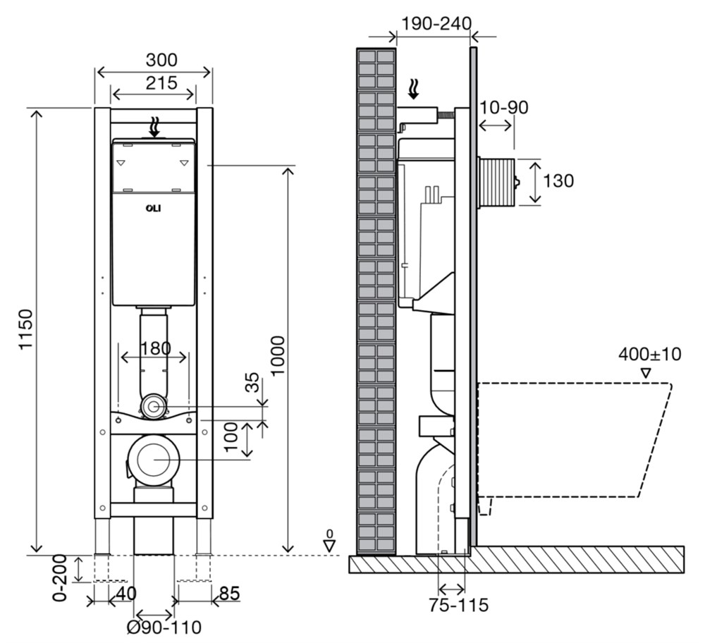 - Совместима с моделями подвесных унитазов с расстоянием между креплениями 180мм