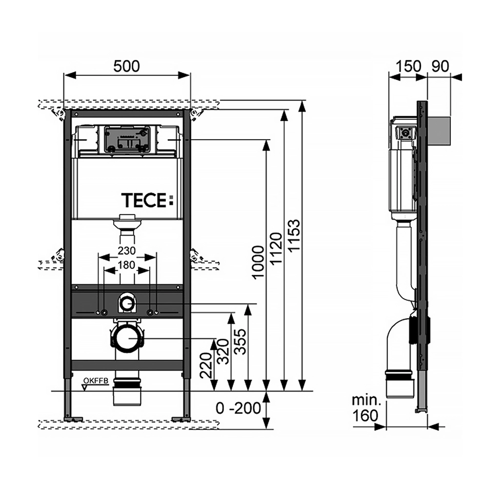 Благодаря специальным отверстиям в раме инсталляция TECE TECEprofil 9 300 000 легко интегрируется в профильную систему TECEprofil, металлические и деревянные каркасные конструкции, а также устанавливается как отдельный модуль перед стеной. Самонесущий модуль выдерживает нагрузку до 400 кг, высота опор регулируется в пределах 200 мм. По желанию можно подключить систему отведения воздуха в вентканал. Для этого понадобятся вентилятор, парубок для вывода воздуха и выключатель.