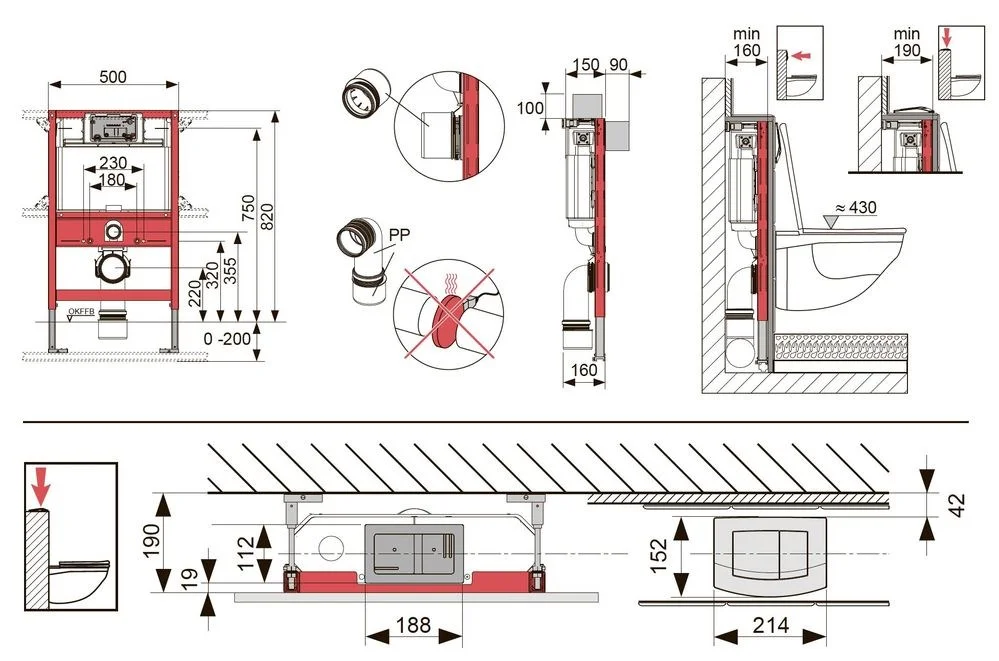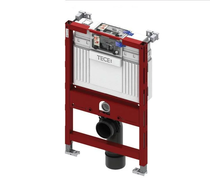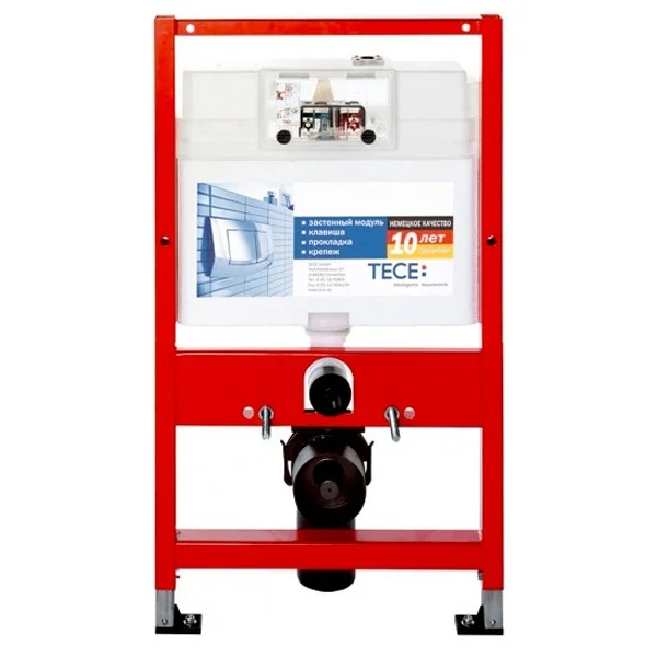 В основе системы инсталляции для подвесного унитаза TECE TECEprofil 9 300 001 лежит стальная монтажная рама грузоподъемностью 400 кг. Объем смывного бачка – 10 литров. Система двойного смыва предусматривает выбор малого (3 л) и большого спуска воды (4,5/6/7,5/9 л). При использовании компактного санфаянса рекомендуется горизонтальный монтаж панели смыва. Модель поддерживает функцию удаления неприятных запахов (понадобятся вентилятор, патрубок и выключатель).
