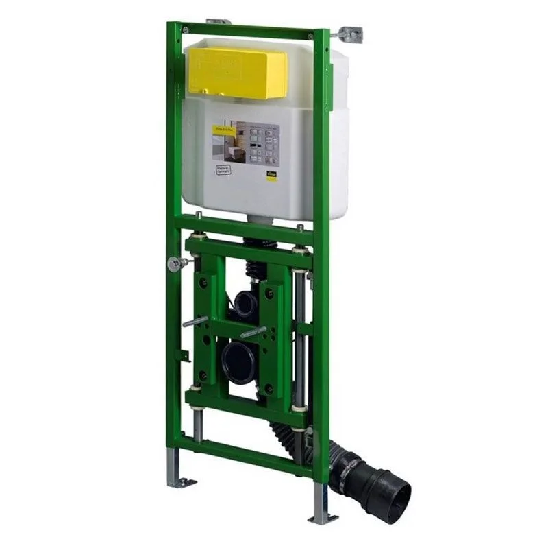 Комплектация: стальная рама с порошковым напылением, смывной бачок 2H, пневматическая пружина, регулируемое по глубине колено для подключения унитаза DN90 из PP, эксцентриковый адаптер DN90/100 из РЕ, крепежный материал для модуля и керамики, саморезы для фиксации на металлических каркасных конструкциях, отверстие Ø 11 мм для крепления на деревянном каркасе или установки крепежного элемента для поручня (модель 8169), выдвижные опоры.