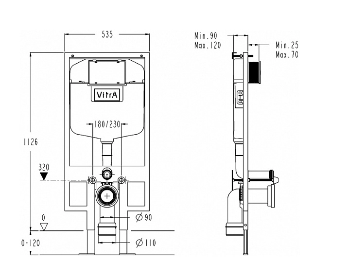 - Прочность - В отличие от стандартных систем инсталляций, VitrA делает больше точек крепежа, в том числе к капитальной стене (6 точек крепежа). Помимо этого, инсталляции VitrA тестируются на нагрузку в 400 кг. Это гарантирует высокий уровень прочности.