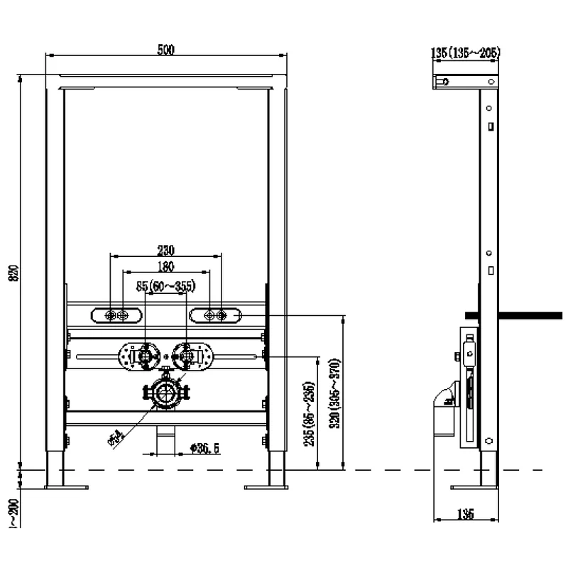 Инсталляция для биде Esbano (ESINFRAMBD) FRAM-BD, 820х1020x500x135х205