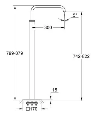 - Рекомендованное минимальное давление 1,0 бар Для установки необходим 45984001 Монтажный набор для напольного смесителя GROHE