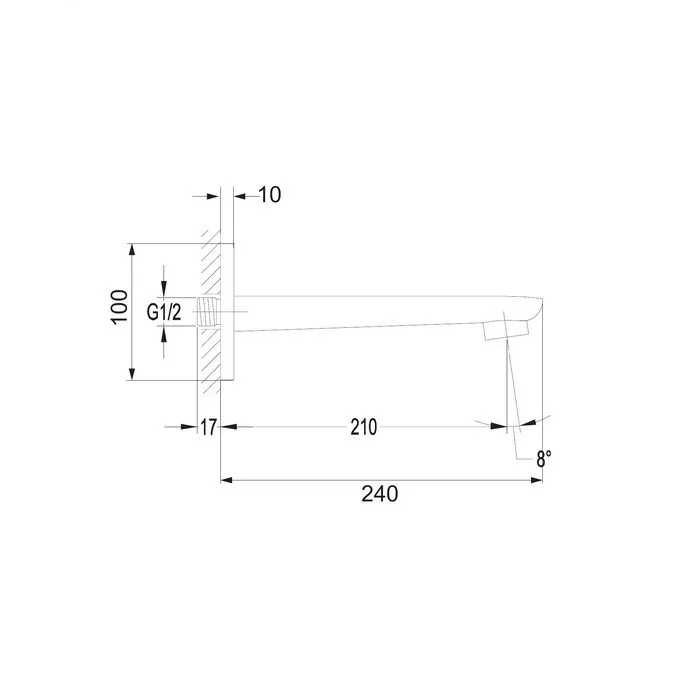 - латунный; - длина излива: 21 см; - размеры розетки: 10x10 см; - подвод воды: 1/2”.