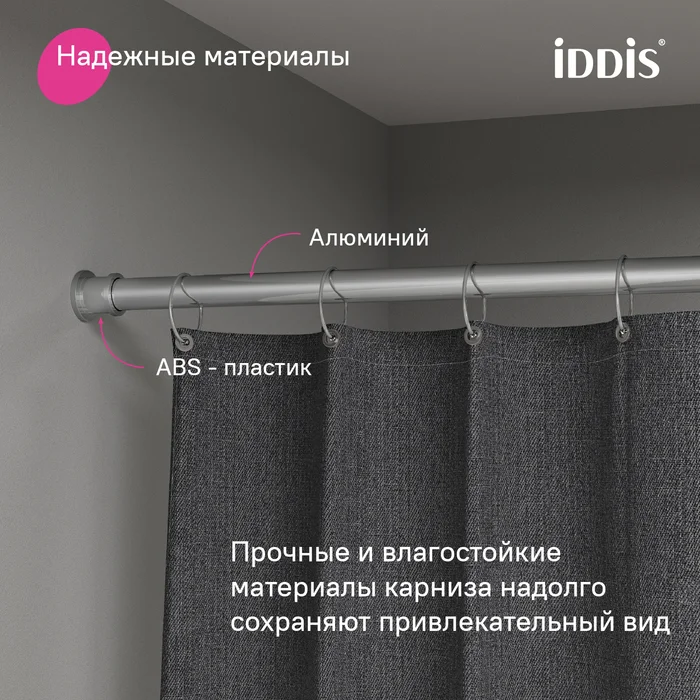 • Карниз универсальный: подойдет для ванной, жилой комнаты, гардеробной и балкона. Может быть установлен на любой тип поверхности.
