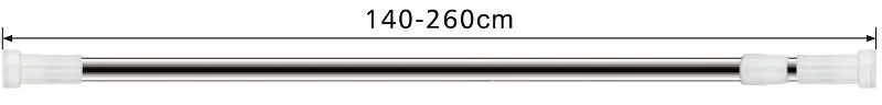 Карниз телескопический Haiba. Регулировка размера: 140-260. Конструкция карниза с внутренним замком. Материал: сталь SS 202. Метод установки: распор.