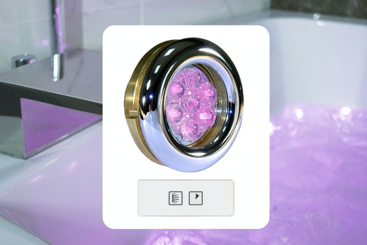 Опция для пустых ванн и для ванн с системами массажа. Одна LED-лампа, меняющая цвет по спектру, кнопка включения на борту ванны.