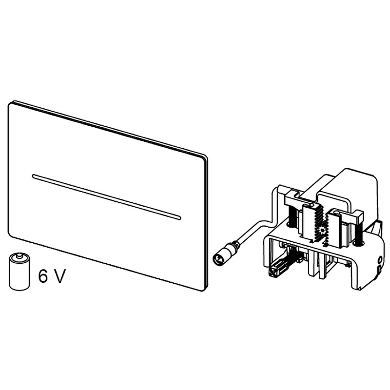 Электронная Клавиша смыва с гигиеничной бесконтактной активацией смыва для стандартных бачков ТЕСЕ (глубиной 13 см) с фронтальной активацией и высотой высотой установки около 1 м (центр панели смыва). Плоская панель из нержавеющей стали в комплекте с крепежными элементами, герметичным отсеком для батарей для установки внутри бачка (4 батареи тип Mono/D/LR 20) и электроприводом смыва для систем двойного смыва. Совместима с контейнером для гигиенических таблеток.