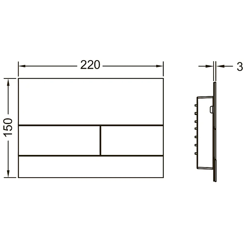 Клавиша смыва для смывных бачков TECE, фронтальная или верхняя установка. Сверхплоская металлическая Клавиша смыва с двумя установленными на пружинах клавишами кулисного типа. В комплект поставки входят толкатели, крепежные элементы и инструмент для монтажа/демонтажа. Совместима с контейнером для гигиенических таблеток. PVD покрытие гармонично сочетается с душевым профилем TECEdrainprofile и комбинируется с модными коллекциями ведущих производителей (hansgrohe / AXOR). Размеры (ш x в x г): 220 × 150 × 3 мм Примечание: Минимальная толщина отделки стены – 30 мм!