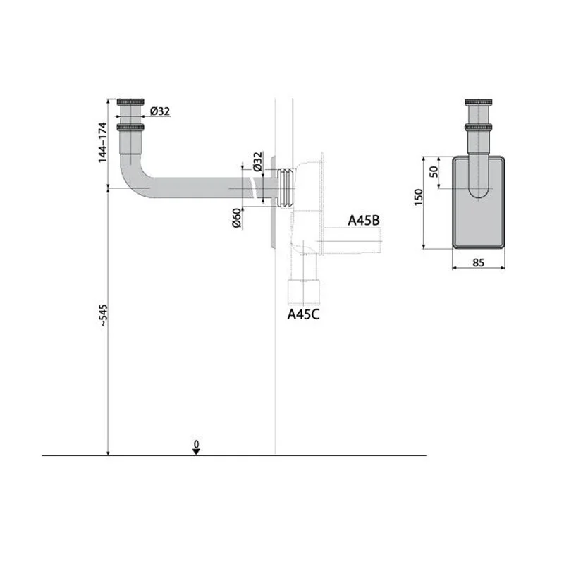 Подключение сифона A45B, A45C