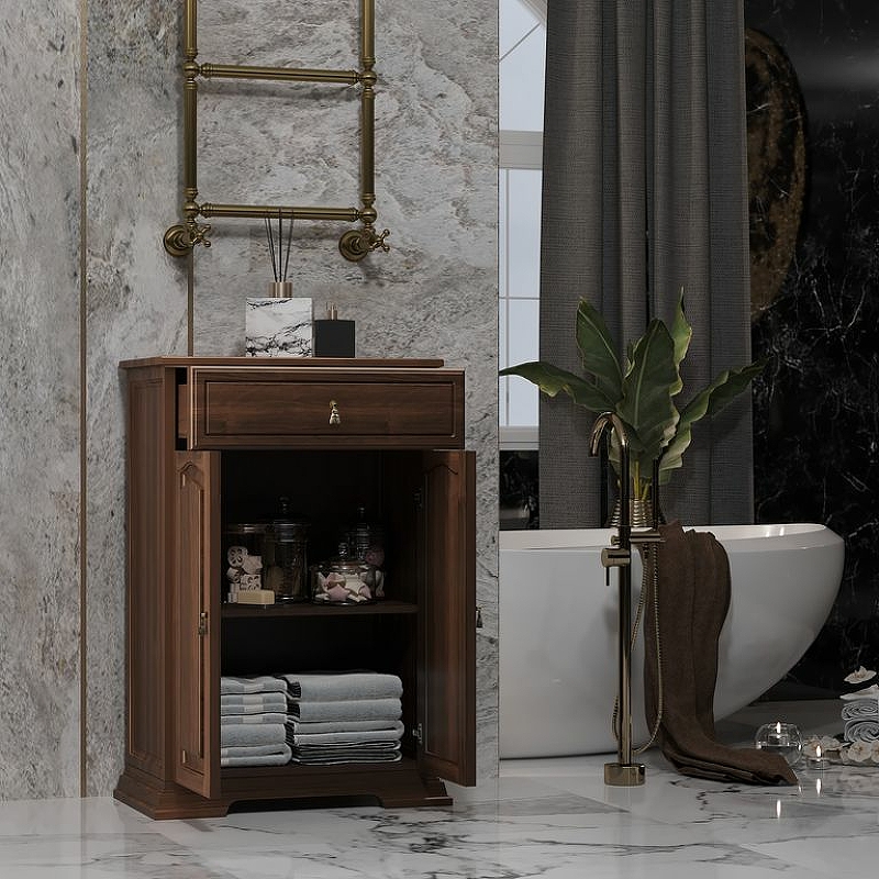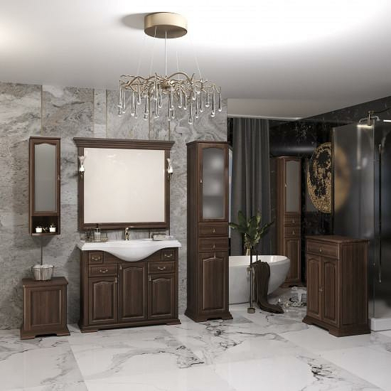 Несколько вариантов пеналов — узкий, стандартный (с бельевой корзиной) и двухстворчатый — удачно завершают комплектацию коллекции.