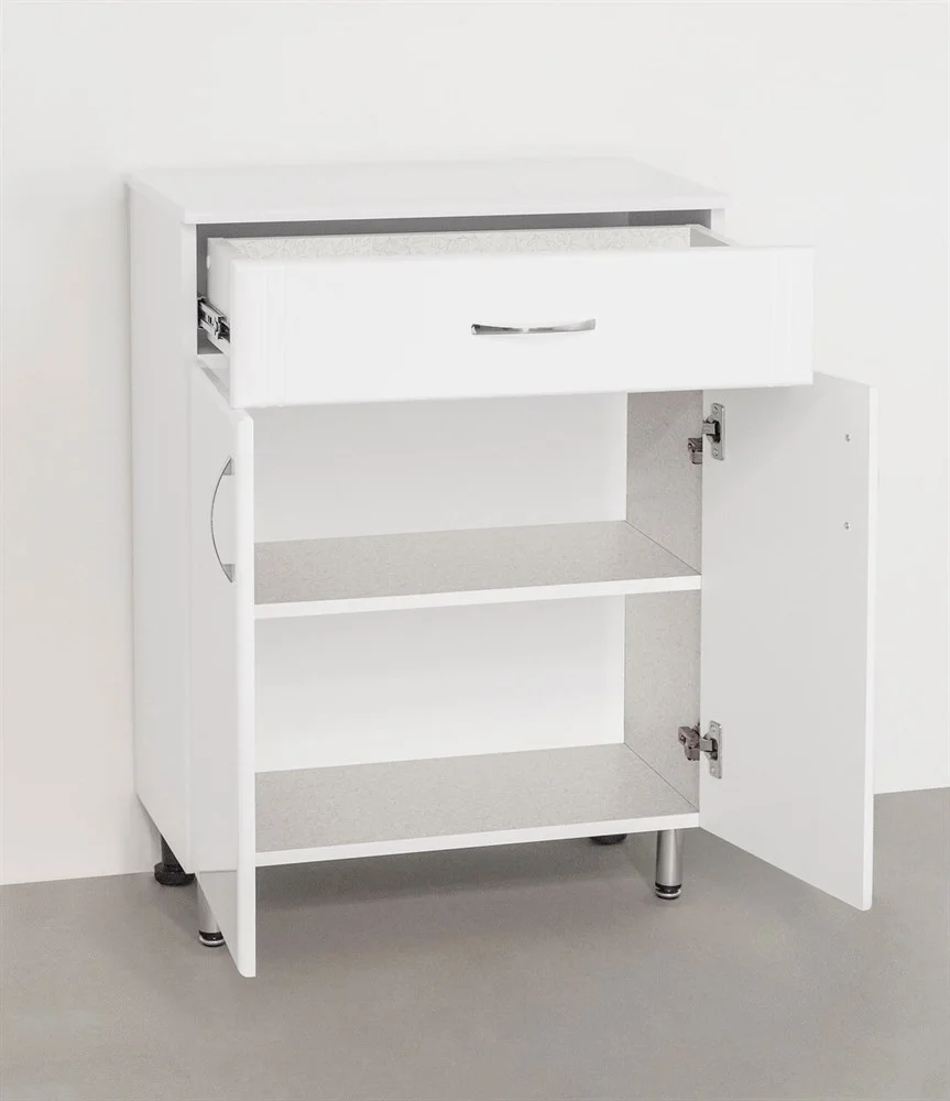 Комод бренда "Style Line" Эко Стандарт 600 с одним ящиком. Фурнитура - хром, эксклюзивный декор "Луино" - ламинация внутренней стороны изделия. Все материалы полностью влагостойкие
