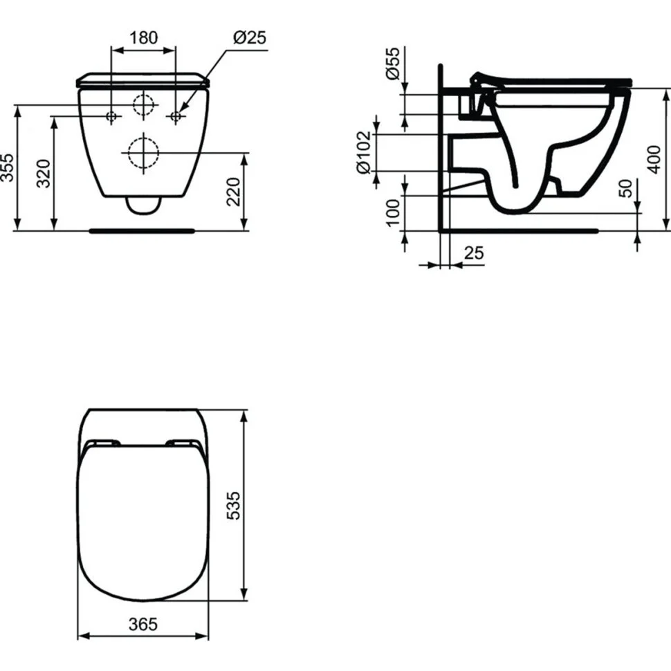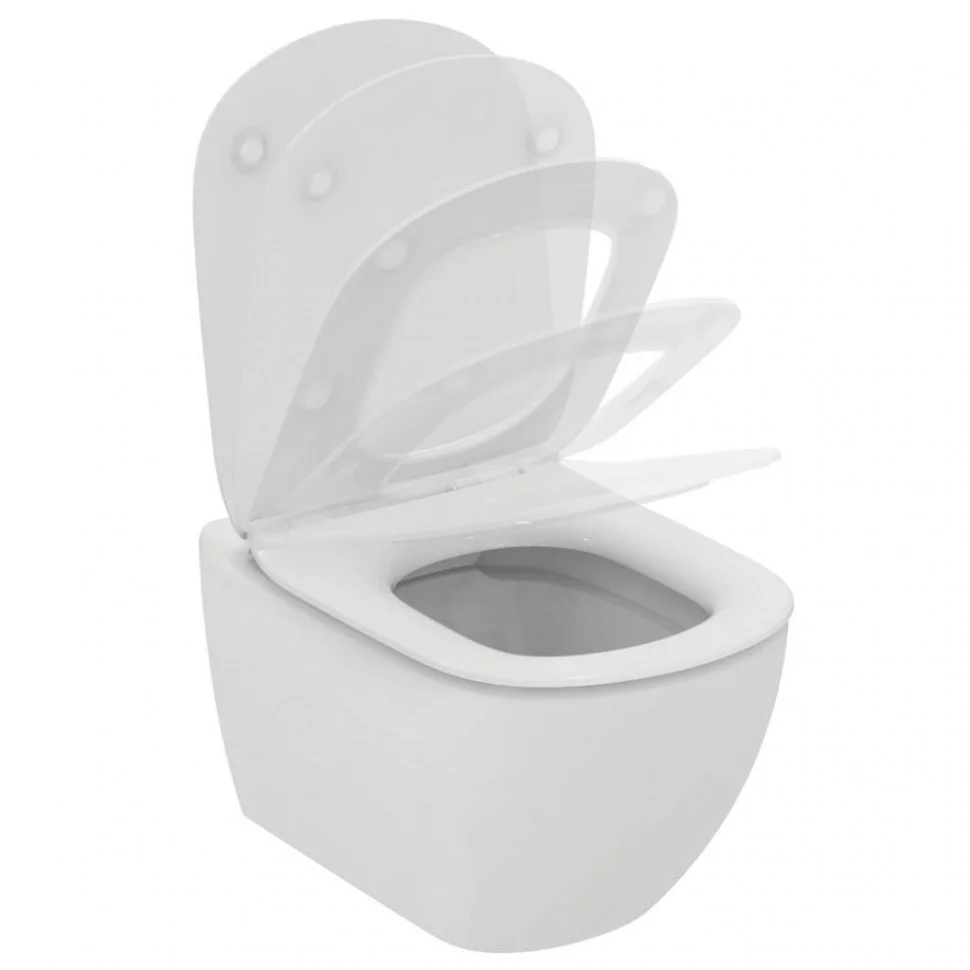 - Подвесной унитаз TESIRimless T355101 безободковый, с сидением и крышкой с функцией плавного закрытия T352701