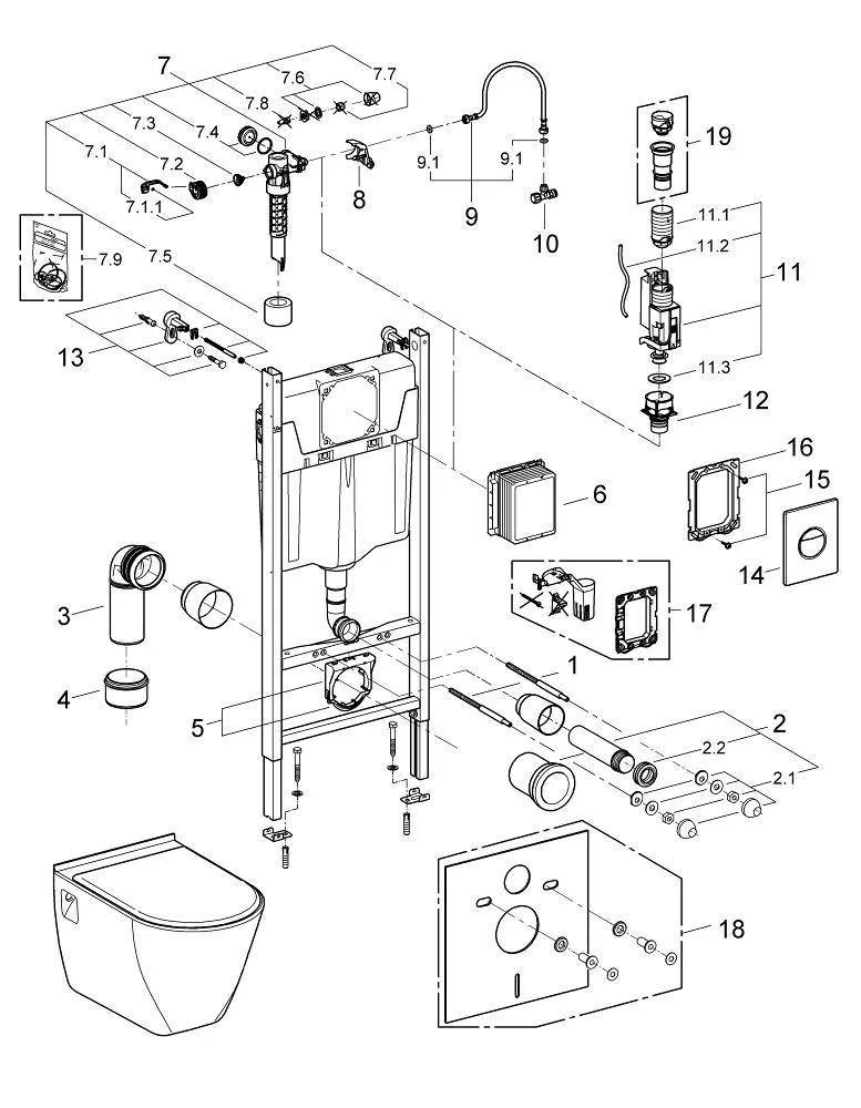 - впускной и смывной гарнитуры