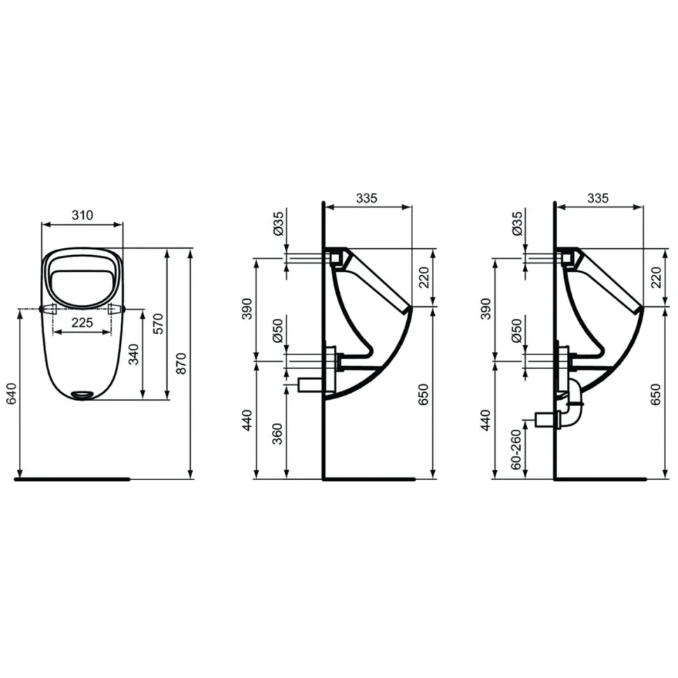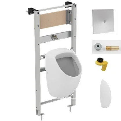 Промо-комплект, состоящий из: A3732XJ CERAPLUS Настенная панель с инфракрасным датчиком для электронного подключения писсуара (для комбинации с A3794/95/96NU), нержавеющая сталь; A3795NU PROXIMITY CERAPLUS Электронный встраиваемый комплект для инфра-красного подключения для писсуара (от сети 220V), для комплектации с A3732XJ. Для монтажа с писсуарами со скрытой (задней) подводкой; E567101 CONNECT Писсуар, задняя подводка, горизонтальный или вертикальный выпуск (отверстие внизу), смыв 0,3 - 0,7 л/сек.,мин.смыв 2л, с крепежом TT0257919; K710667 Соединительный комплект для писсуаров с задней (скрытой) подводкой (прокладка и трубка, для монтажа между писсуаром и механизмом слива); K822367 Сифон для писсуара, горизонтальный выпуск; S612001 Перегородка для писсуара с крепежом EES928567; R016367 PROSYS Рама для монтажа писсуара с задней подводкой и встраиваемого смывного устройства перед капитальной стеной или между двумя гипсокартонными стенами. Рама тестирована нагрузкой 130 кг; устойчива к коррозии и царапинам. Л