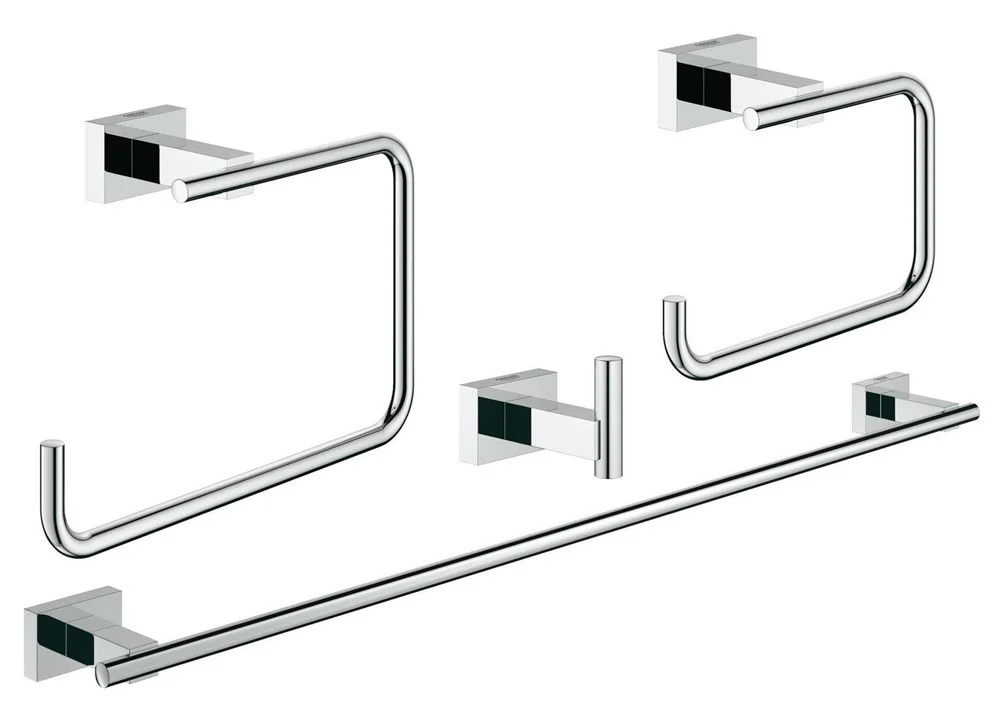 Состоящий из кольца для полотенца, держателя для полотенца 600 мм, крючка для халата, держателя для туалетной бумаги , комплект аксессуаров GROHE Essentials выполненный в цвете хром станет идеальным выбором для вашей ванной. Все части комплекта сделаны в дизайне неподвластном времени и с применением современных технологий.