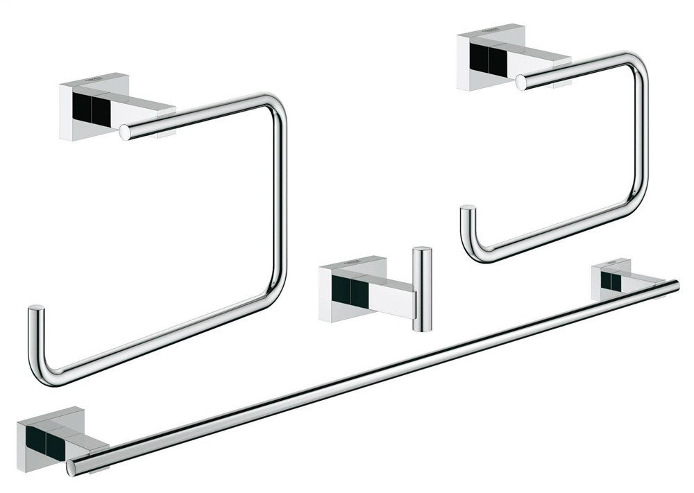 Состоящий из кольца для полотенца, держателя для полотенца 600 мм, крючка для халата, держателя для туалетной бумаги , комплект аксессуаров GROHE Essentials выполненный в цвете хром станет идеальным выбором для вашей ванной. Все части комплекта сделаны в дизайне неподвластном времени и с применением современных технологий.