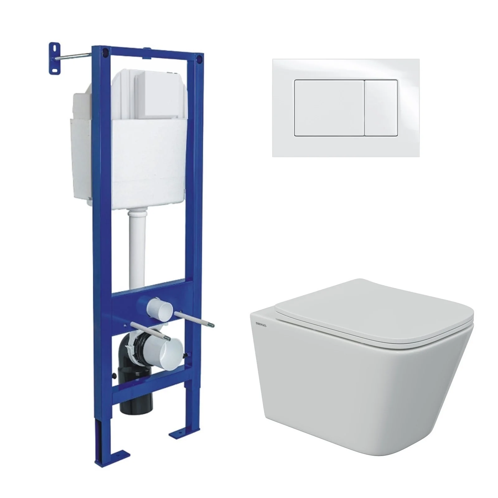 Комплект инсталляции BERGES АТОМ 410 с клавишей смыва Atom белая, унитазом FLOE S Rimless 51 см и сиденьем Floe S Slim SO, микролифт, быстросъём 043368