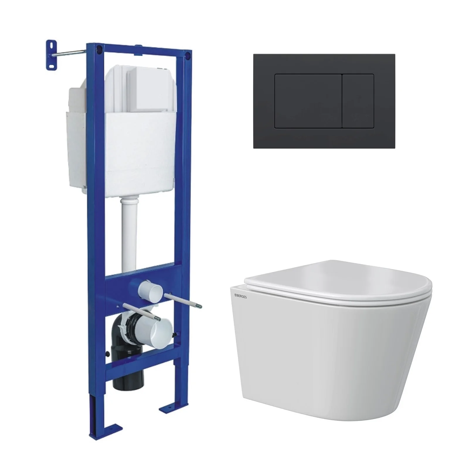 Комплект инсталляции BERGES АТОМ 410 с клавишей смыва Atom черная Soft Touch, унитазом VITA Rimless 49 см и сиденьем микролифт, быстросъём 043385