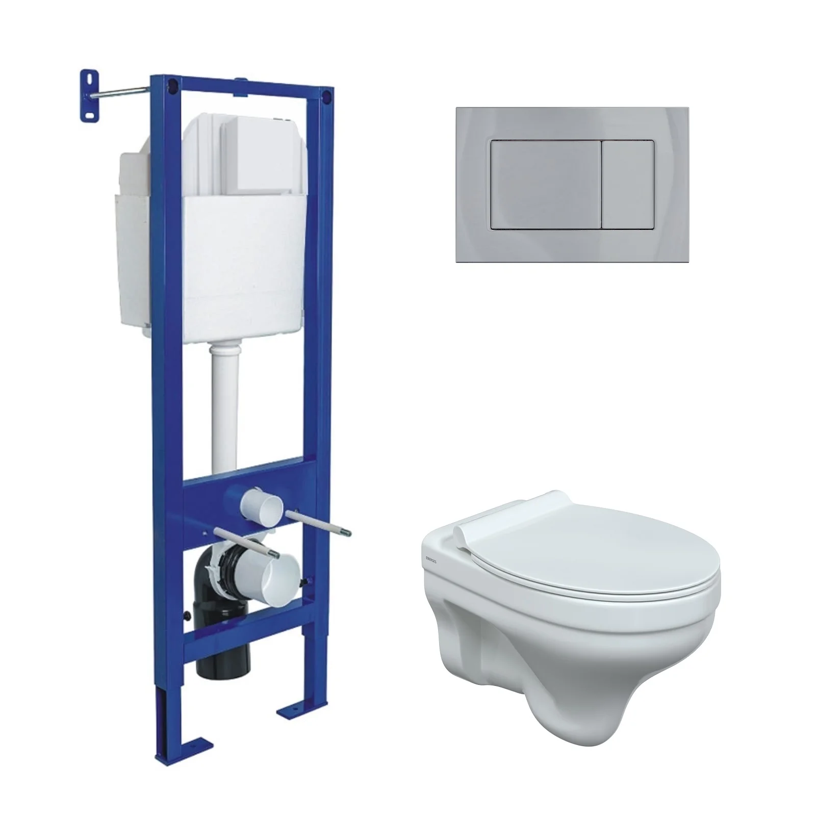 Комплект инсталляции BERGES ATOM 410 с клавишей смыва Atom хром глянец, унитазом подвесной Albit S с сиденьем Top Slim SO, микролифт, быстросъем 043315