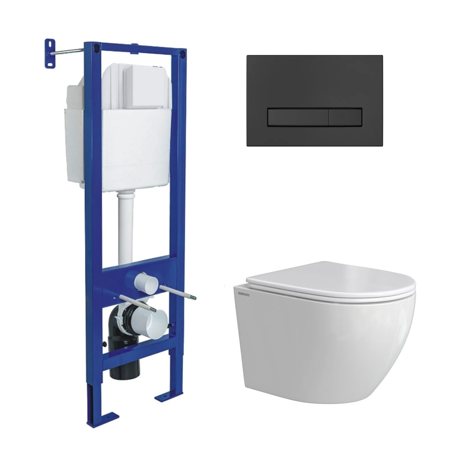 Комплект инсталляции BERGES АТОМ 410 с клавишей смыва Atom Line черная Soft Touch, унитазом OKUS Rimless 49 см и сиденьем микролифт, быстросъём 043393